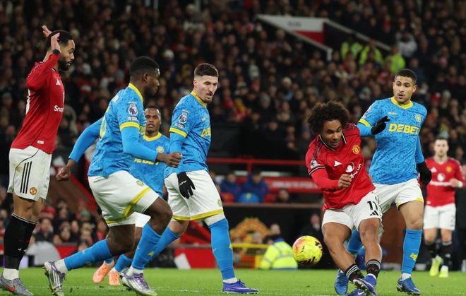 曼联排出了4231阵型。谢什科顶在最前面。多古、齐尔克泽和库尼亚的进攻组合联袂出击。卡塞米罗和乌加特组成双后腰。达洛特、艾登-海文、利桑德罗和卢克-肖4后卫首发出战。拉门斯担任首发门将。布鲁诺-费尔南德斯因伤缺阵。姆伯莫、迪亚洛和马兹拉维去国家队踢比赛缺席。