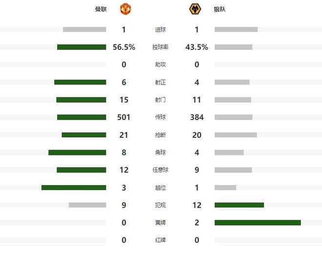 下半场曼联继续猛攻对手,第53分钟卡塞米罗挑传禁区,舍什科的头球攻门角度太正,被狼队门将轻松没收,错失了为球队再次取得领先的绝佳机会,3分钟之后,狼队球员莫斯克拉头球解围失误,皮球直奔自家球门而去,若泽萨门线救险,避免了一粒乌龙球。 不甘心在主场面对倒数第一支拿到一场平局的曼联,余下的时间,大举压上围攻狼队,常规时间最后时刻,多古打入一粒绝杀进球,可惜越位在先,进球被主裁判果断取消,曼联只能接受平局的结果。