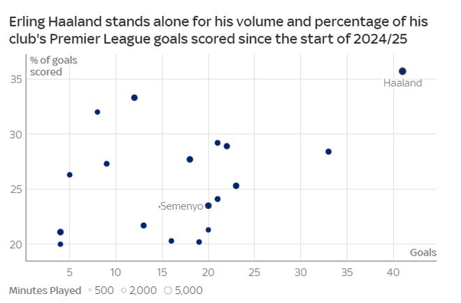 尽管哈兰德状态上佳,但曼城也在冬窗未雨绸缪。记者隆-沃克分析,“塞梅尼奥可以即插即用,已经在英超证明了自己,即将进入巅峰期,而且身价并不高。他为曼城提供的,正是解决对哈兰德进球过于依赖问题的答案。”