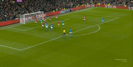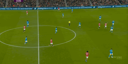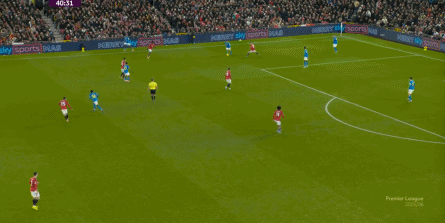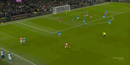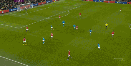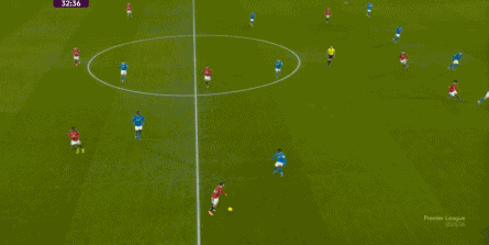 也能通过捕捉曼联的失误,吃掉库尼亚之后,从右路继续送出传中: