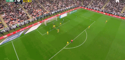 连丢2球后利雅得胜利才如梦初醒,第32分钟,阿姆里禁区外围轰出一脚大力远射,桑比意外扑球脱手不慎将球漏进球门,1:2!第42分钟,阿姆里右路斜线传中,C罗门前头球擦着横梁出界;第44分钟,布罗佐维奇角球旋入禁区,阿姆里头球破门同样上演梅开二度,2:2!半场结束前,还是加莱诺左路的突破横传,托尼打门击中立柱差点上演帽子戏法。
