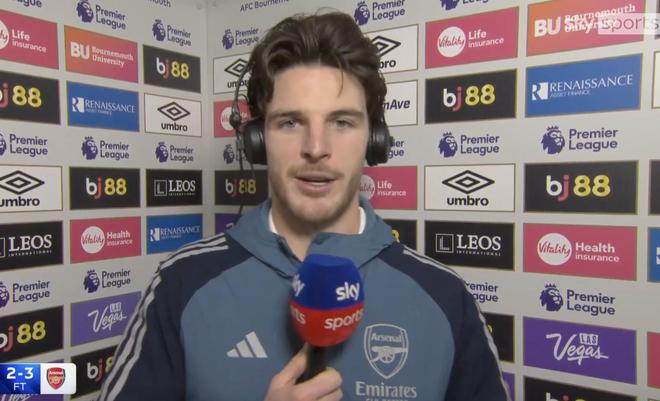 英超第20轮,阿森纳客场3-2击败伯恩茅斯,此役上演梅开二度的赖斯赛后接受了天空体育的采访。