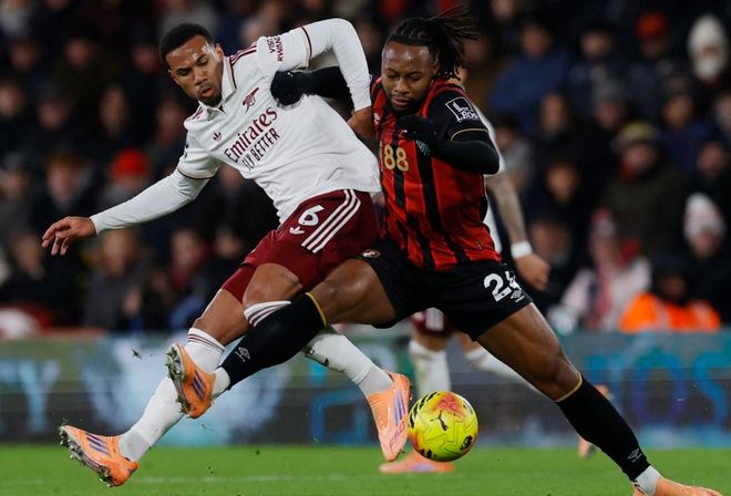下半场易边再战。第54分钟,阿森纳反超比分!厄德高在禁区内把球回传,厄德高后插上直接推射,球进了!厄德高恰到好处的传球让赖斯能够轻松完成射门,把球打进。第66分钟,阿森纳进行换人调整,热苏斯、特罗萨德和萨卡替补上场。而伯恩茅斯则用阿德利换下布鲁克斯。