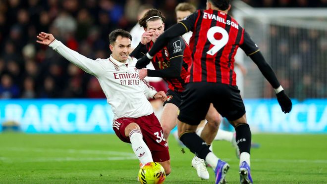 第10分钟,在没有任何高压逼抢的情况下,加布里埃尔大脑短路,直接将球传给了埃瓦尼尔森,后者笑纳大礼,伯恩茅斯意外取得领先。