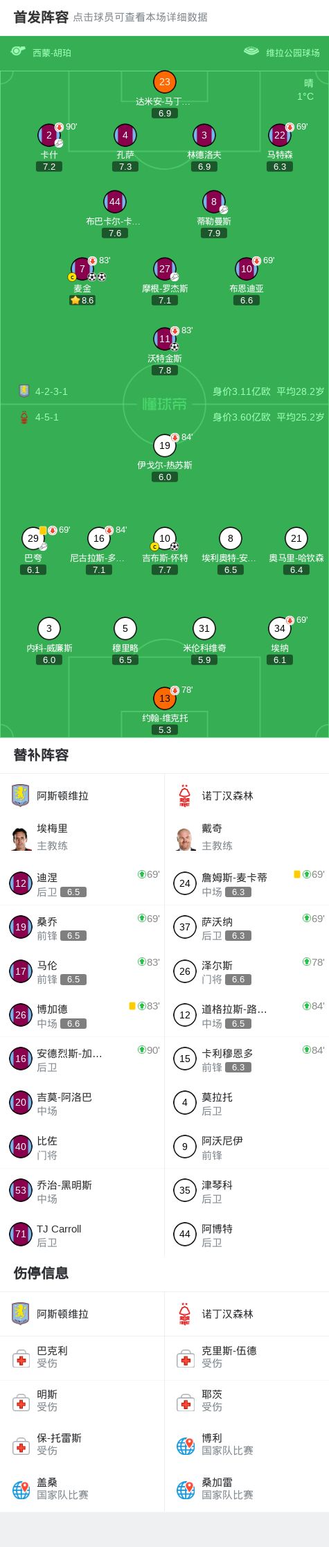 维拉31森林,麦金双响,沃特金斯世界波,维克托送礼后伤退
