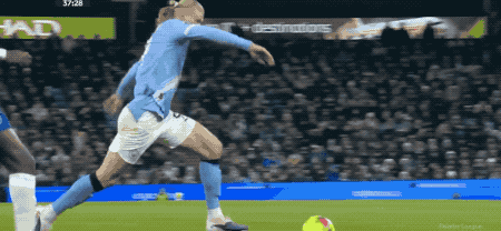 比赛的前30分钟,场面稍显沉闷,虽然曼城射门次数4-1领先,但两队都没什么机会。 真正精彩的场面在上半场的后15分钟后出现,第37分钟,哈兰德的射门被小查洛巴挡了一下,依旧奔向死角,约恩森奋力将球扑出。