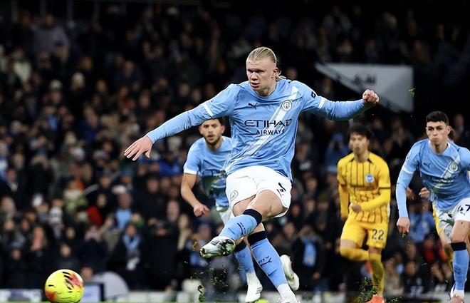 在顶住对手一段时间后,曼城才逐渐找到自己的节奏;第21分钟,多库小角度似传似射,皮球滑门而过;第25分钟,阿克传中,哈兰德抢点打门偏出;第41分钟,多库突破到禁区内被迭戈-戈麦斯直接撂倒在地,主裁判观看VAR后吹罚点球,哈兰德操刀主罚命中,1:0!哈兰德打破了近3场0球0助攻,英超进球数已经超越了德罗巴;同时哈兰德曼城生涯各项赛事173场比赛已打入150球,其中包括本赛季26球。