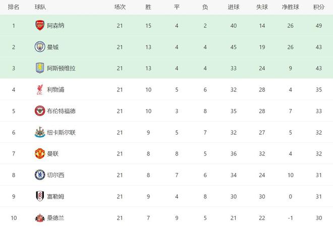 5连胜结束!随着阿森纳00利物浦,英超最新积分榜:曼城松一口气