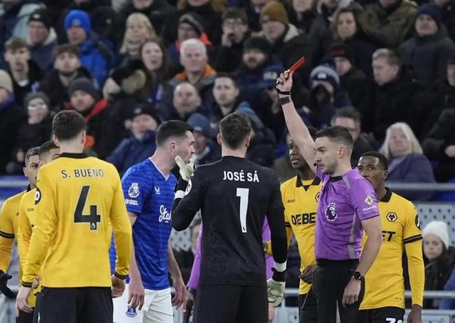 这个夜晚的标志性画面将是迈克尔-基恩抓住托卢-阿罗科达雷的辫子,但最终抓狂的人却是大卫-莫耶斯。 这位埃弗顿主帅目睹了自己的球队在中后卫因此事被罚下(因暴力行为)后减员至10人,随后又因杰克-格拉利什未能控制住沮丧情绪也领到红牌,变成了9人应战。 一支本就因伤病严重减员的阵容,现在又将缺少两名有影响力的首发球员来应对周六足总杯对阵桑德兰的比赛。基恩还将缺席对阵阿斯顿维拉和利兹联的比赛。 莫耶斯因抗议基恩的红牌而吃到黄牌,终场哨响后很久他仍然怒火中烧。 他对斯托克利公园(英超VAR中心)的官员感到愤怒,正是他们让主裁判托马斯-柯克去查看监视器以重新审核基恩的动作。他也对有人认为这名后卫是故意猛拉对方前锋的头发的想法感到暴怒。但或许同样令他沮丧的是,对阵布伦特福德和垫底的狼队这两场看似可胜的主场比赛,最终只拿到了一分。 尽管他对那张被他称为“荒谬”的红牌感到愤怒,但这位苏格兰教头可能同样懊恼的是,这张红牌出现在球队一系列自我伤害的背景下。 人们只需回想一下十一月战胜曼联那场比赛中埃弗顿的另一张离奇红牌。那晚,伊德里萨-盖耶在场上与基恩争论时击打了后者的脸部,被罚下场。 尽管那场比赛的叙事以积极的方式结束——埃弗顿在老特拉福德拼下了一场罕见的胜利,但结局却带着刺痛。盖耶在随后对阵纽卡斯尔联的比赛中缺席,球队在山楂球场遭受了令人士气低落的4-1惨败。 或者,当上个月杰克-奥布赖恩莫名其妙地手球送给阿森纳一个决定性的点球和三分时。 然后,在本场对阵狼队的补时第90分钟(埃弗顿未能在占据优势的上半场解决战斗),格拉利什爆发了。他因柯克判给他一个任意球而讽刺性地鼓掌,这位官员迅速出示了黄牌——而三分钟前,格拉利什就因对基恩冲突事件的判罚提出异议已经吃过一张黄牌。 这是格拉利什在英超的首次被罚下场。和基恩一样——他并非那种你会想象故意抓对手头发的、狡黠阴险的中后卫——这不符合他的性格。