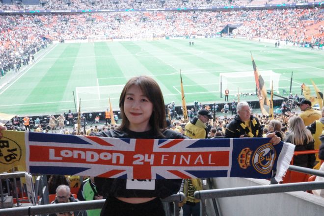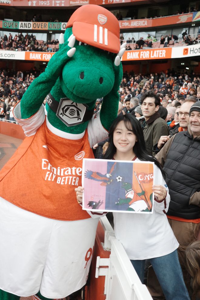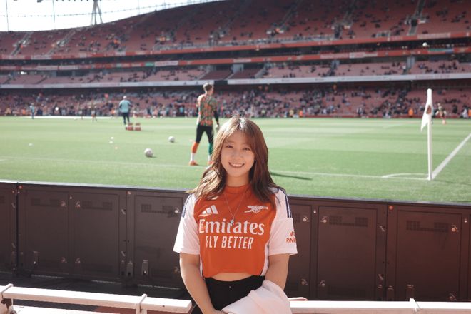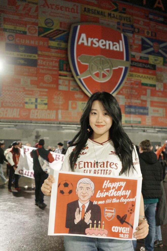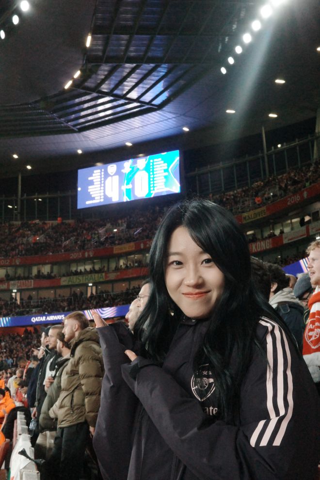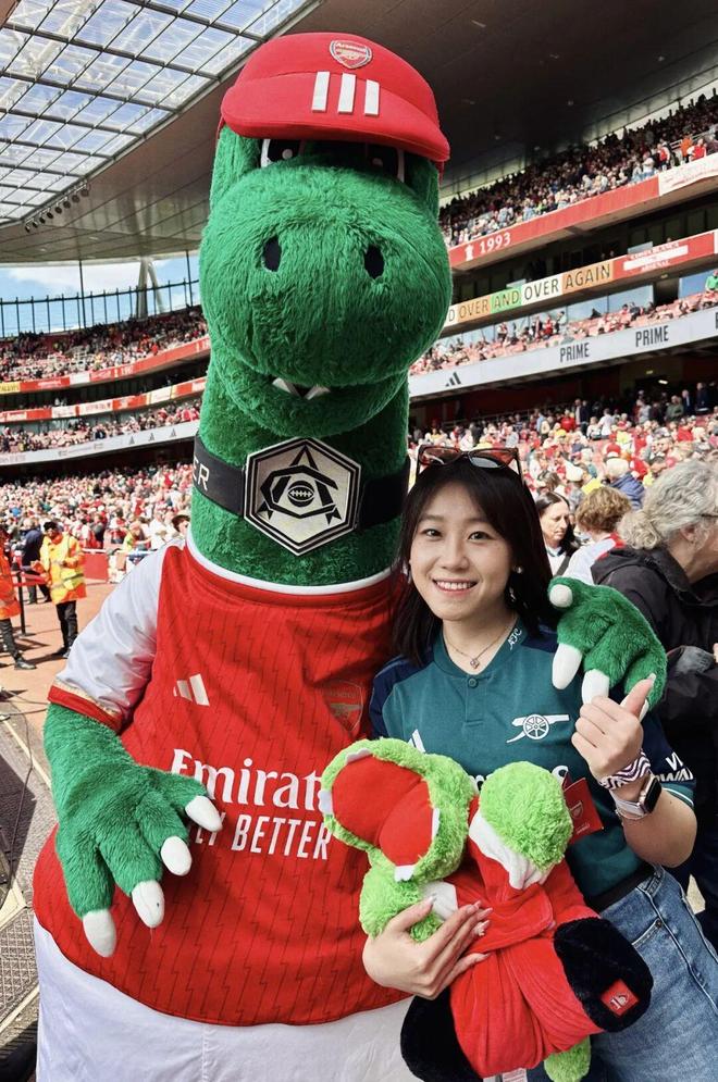 本文字数|1552字 建议阅读时间|5分钟 Q:简单介绍一下自己?以及之于足球的过往? A:我叫菲菲,是一名95后女球迷,出生在山东济南。我的俱乐部主队是阿森纳,因为现在在伦敦工作,所以每到世界杯或大赛,我也会选择支持英格兰。我和足球的最初记忆其实非常生活化。小时候的夏夜,会跟着爸爸去济南的烧烤摊看世界杯,老电视、小板凳,还有一群陌生却因为足球迅速热络起来的大人们。现在回想起来,那些画面都还是特别珍贵的记忆。中学时,班里大部分同学都是皇马和C罗的球迷,每天都能听到朋友们聊足球,我们也会一起去看山东泰山的主场比赛。上大学之后,我更多是看世界杯和欧洲杯,不太会熬夜追联赛。直到去英国读书,才和室友们一起关注英超的各种动向。但真正的转折点,是去年正式来到伦敦工作,我才开始尽量一场不落地走进球场支持自己的主队。截至目前,我已经在现场看过45场比赛,这种连接是过去十几年隔着屏幕无法比拟的。我想我这辈子都会是阿森纳球迷了。