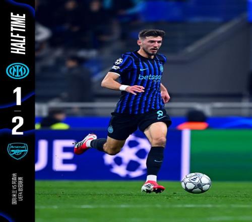 上半场比赛结束,我们暂时主场1比2落后阿森纳。 下半场易边再战。