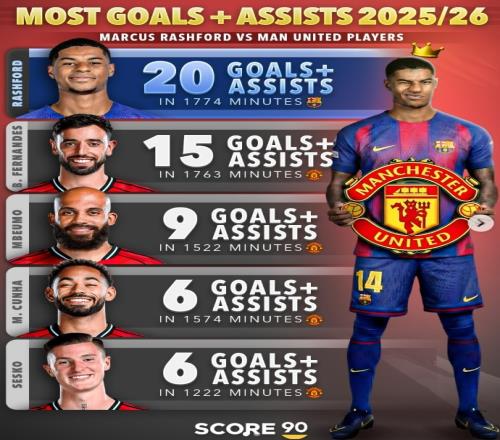 想他吗拉什福德本赛季直接参与20球,比曼联一众攻击手都要多