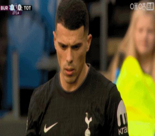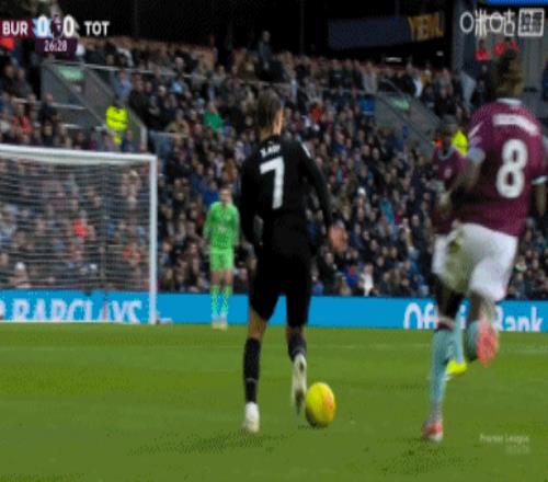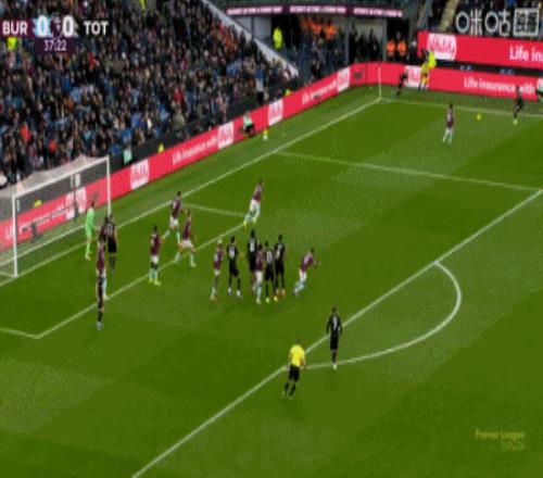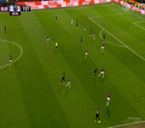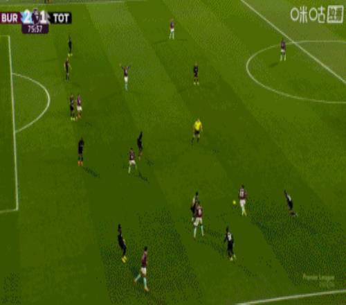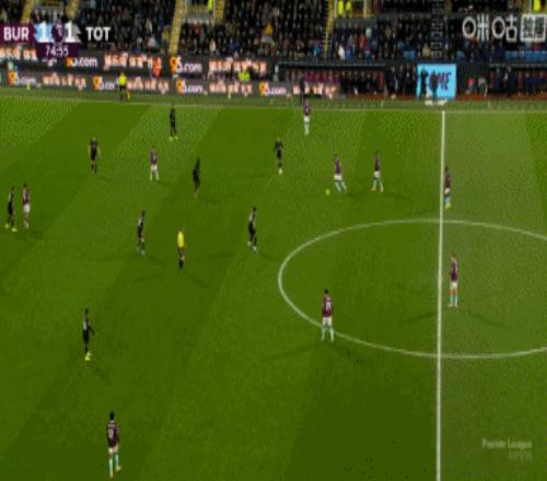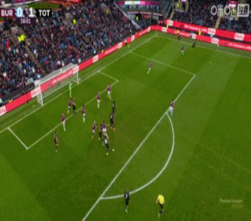 第45分钟,沃克传到禁区后点,图安泽贝跟进打门得手!热刺1-1伯恩利↓