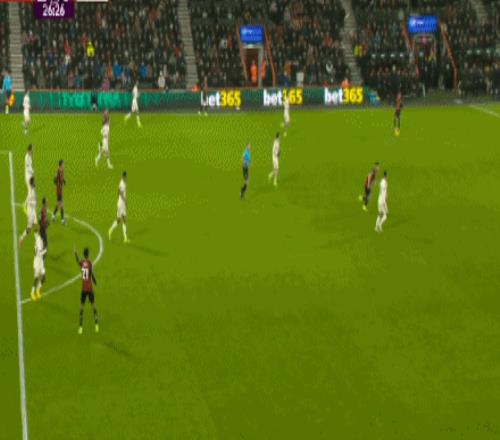 独家看英超就在咪咕 第33分钟,希尔送出直塞,希门尼斯推射穿裆入网!伯恩茅斯2-0利物浦