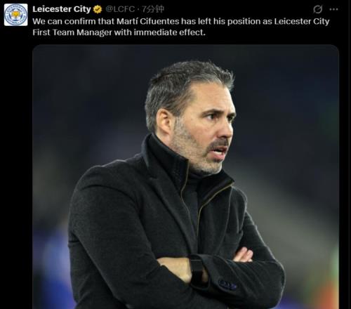 官方:莱斯特城主教练西富恩特斯下课英冠10胜8平11负仅排第14名