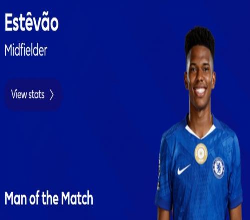 传射建功,英超官方:埃斯特旺当选切尔西31水晶宫全场最佳球员