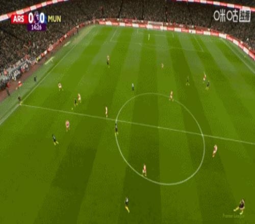 比赛焦点瞬间: 第9分钟,阿森纳右路角球开到禁区,马奎尔解围不远点球点附近特罗萨德抽射打高了。↓