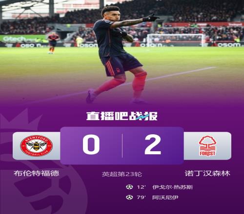 3轮不败!森林20布伦特福德伊戈尔热苏斯破门阿沃尼伊一条龙