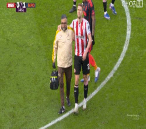 第37分钟,布伦特福德遭遇重创!球场上达姆斯高和阿耶尔同时坐倒在地,随后两人均无法坚持比赛,双双伤退↓