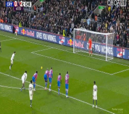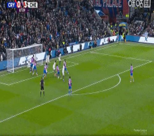 第59分钟,水晶宫禁区内手球犯规,切尔西获得点球,恩佐主罚命中。 第72分钟,水晶宫球员沃顿两黄变一红被罚下场。