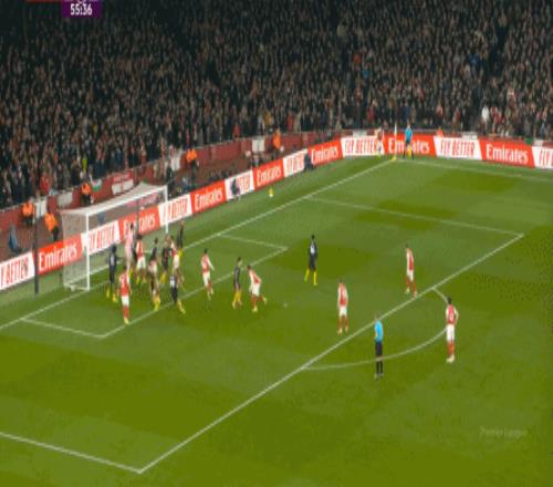 比赛第18分钟,阿森纳通过任意球打出了本场比赛的第一次威胁进攻: