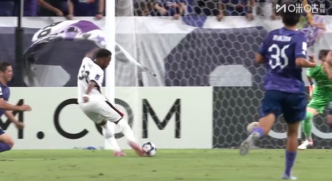 第63分钟,广岛三箭前场左侧角球机会,加藤陆次树门前端射,皮球砸在横梁上弹回,海港逃过一劫。