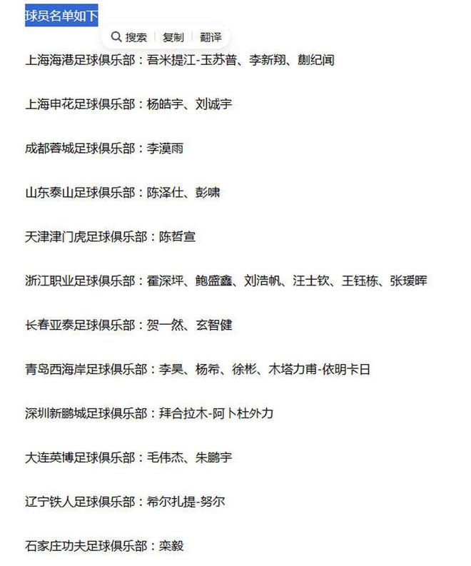浙江成国脚第一输出大户!6虎入选U22国足中甲王牌落选小毛在列