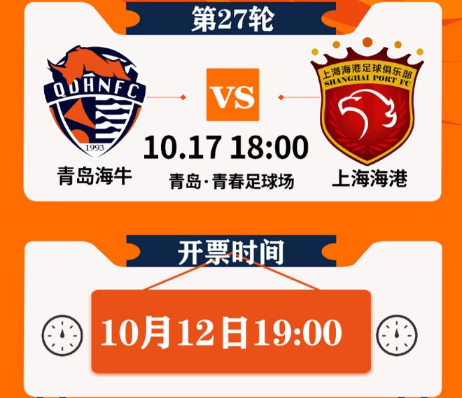 最先开球!青岛海牛发布迎战海港票务,保级争冠之战,都力拼3分