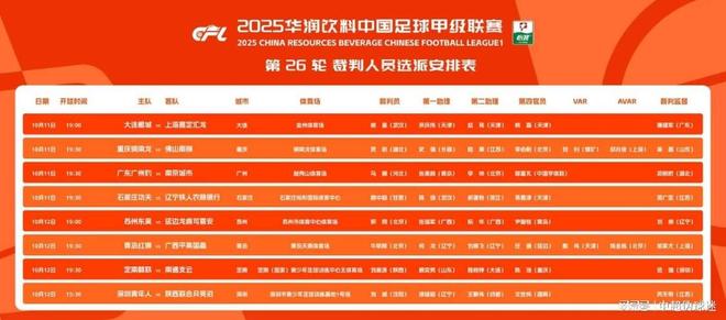 中甲26轮裁判选派:2场关键战启用VAR,多名中超裁判执哨!