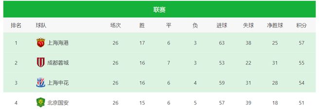 目前,中超联赛仅剩4轮,但是夺冠形势依然并不明朗,像排在榜首的上海海港,以及位居积分榜第4的北京国安都有夺冠希望,而接下来我们根据目前中超前四的剩余赛程,以及他们现在的处境,我们来分析一下接下来的争冠走势。