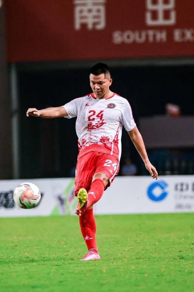 36岁的杨柯在湘超赛场踢得依然游刃有余。长沙市足协供图
