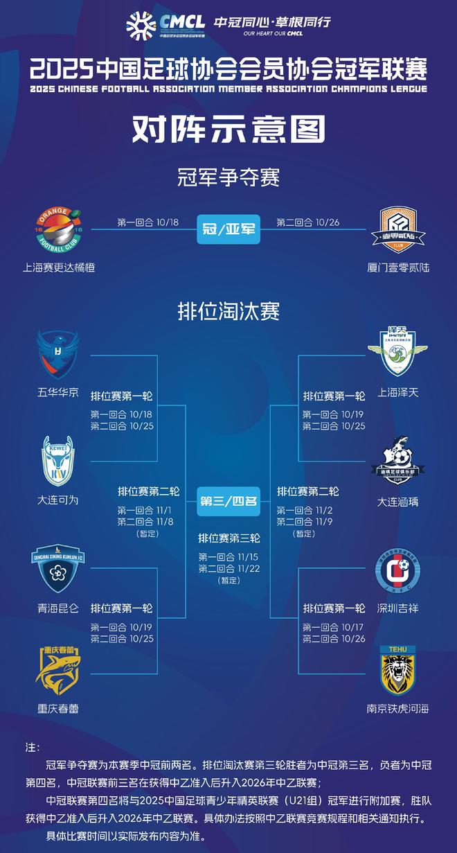 10月25日、26日,2025中冠总决赛交叉排位赛阶段,将展开第一轮第二回合较量,8支球队将继续捉对厮杀,争进四强,进而角逐1.5个冲乙名额,具体对阵为: 10月25日 15:00 大连涵瑀VS上海泽天 15:00 重庆春蕾VS青海昆仑 15:00 大连可为VS五华华京 10月26日 15:00 南京铁虎河海VS深圳吉祥 从首回合来看,各场对阵都很激烈,即便分出胜负,差距也不大。这意味着次回合的较量更加激烈,甚至惨烈。 其中,大连可为是唯一一支首回合净胜2球的球队,而且是客场完胜五华华京。回到主场的大连可为,只要自己不犯错误,就很容易拿到晋级四强资格。当然,足球场上,2-0也是个危险的比分,放手一搏的五华华京,肯定会全力进攻,一旦他们取得进球,双方心理就会发生微妙变化。所以,这很考验两队的排兵布阵,以及技战术安排。 大连另一支球队大连涵瑀也拥有先客后主的优势,但首回合他们客场1-2负于上海泽天,有些被动。不过,这个比分并不能证明什么,回到主场之后,他们完全有机会逆转。 在上海赛更达橘橙已经拿到直升中乙门票的背景下,上海泽天如果通过排位赛晋级,那上海足球将再添1支职业球队,可谓意义非凡。所以,接下来客场作战,他们肯定会全力以赴,争取晋级。 深圳吉祥主场1-0战胜南京铁虎河海之后,也占得先机。但1-0的比分也不保险,次回合存在较大悬念。回到主场的南京铁虎河海,将力争逆袭。 另一场比赛中,青海昆仑在高原主场2-2战平重庆春蕾,成为首回合进球最多的场次。从赛季目标来看,双方都渴望晋级中乙。而今,他们都面临残酷战役,在首回合平分秋色的情况下,只能移师重庆,一决高低:胜者继续前行,负者打道回府。 根据排位淘汰赛对阵安排,五华华京、大连可为之间的胜者,将在第二轮中,对阵青海昆仑、重庆春蕾之间的胜者;上海泽天、大连涵瑀之间的胜者,将对阵深圳吉祥、南京铁虎河海之间的胜者。 根据中冠竞赛规程,排位淘汰赛2轮过后,胜出的2支球队,将继续进行第三轮主客场两回合较量,胜者获得2025中冠联赛季军,直升中乙;负者获得第4,与U21联赛冠军进行附加赛,争夺最后1个晋级中乙名额。 排位赛第三轮次回合的时间,暂定为11月22日,与本赛季中超收官是同一天。对忙着冲乙的球队来说,这注定是漫长而残酷的等待。 |