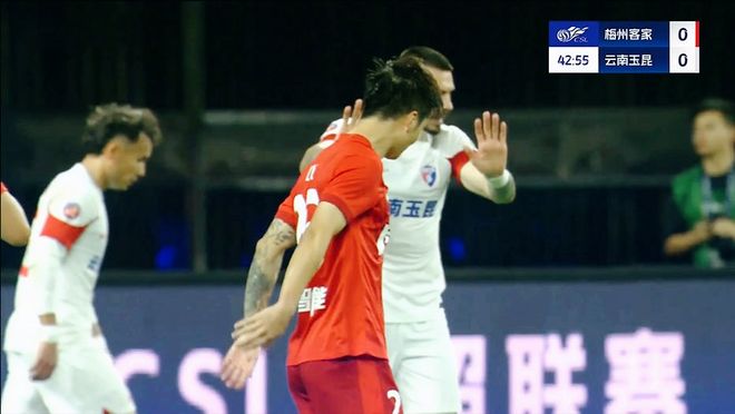 仅仅几分钟后,茹子楠拿球直塞,罗德里戈突入禁区劲射,余鉴贤扑球脱手,幸亏第二反应过快,从门线将球扑住!约尼查飞铲罗德里戈,吃到黄牌!而安德森抗议王迪的吹罚尺度,同样被黄牌警告。半场比赛结束,两队暂时没有破门。 整个上半场,两队的节奏并不快,主场作战的梅州客家在罗德里戈和恩戈姆的组织串联下,数次打出精彩的进攻。而云南玉昆在顶住了对手的连续攻势下,逐渐找到了反击的节奏,恩里克禁区内的支点作用明显,险些洞穿对手的城池。
