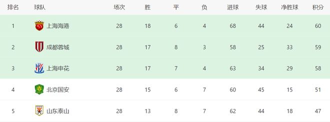 中超第28轮迎来一场焦点战,山东泰山主场3-1战胜上海海港,改变了争冠形势,今晚出战的成都蓉城只要取胜即可登上榜首,同时上海申花赢球情况下,也能追平上海海港。结果,成都蓉城2-2绝平、上海申花2-2绝平,让上海海港保住了榜首位置,积分榜前三名只差2分。