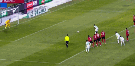 上半场补时第8分钟,法比奥突入禁区之后被绊倒,主裁判回看慢镜头之后判罚点球。法比奥主罚点球被王智峰封出,但王智峰双脚提前离开门线,主裁判判罚重罚点球,法比奥爆射破门,2比0!值得一提的是,此役上半场补时多达15分钟。