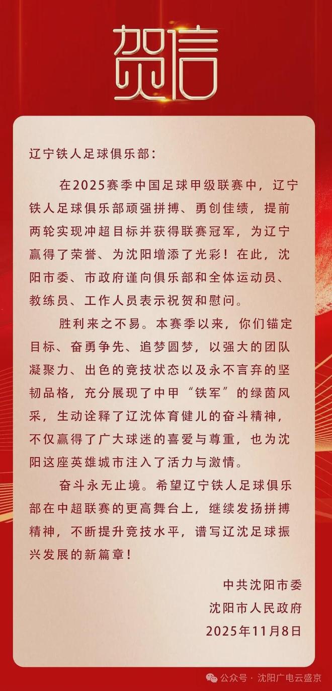 辽宁铁人队提前两轮 获得本赛季中甲联赛冠军 同时锁定 2026赛季中超联赛参赛资格