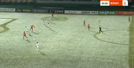 第45+2分钟,中场任意球直接吊向禁区,卢佩塔破门扳平比分,南京城市1-1!