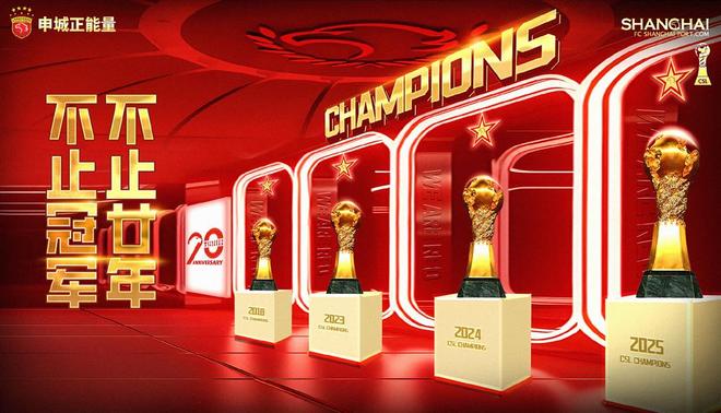 三连冠到手!再度蝉联中超联赛冠军,当天上海海港就在官微上霸气地晒出四冠王(2018、2023、2024、2025)的海报,上面写着:“不止冠军,不止廿年”。这就是冠军所带来的底气,配文表明该俱乐部或许还有更高的追求。今年这一冠,是上港这4个冠军当中最没争议最干净的一个,唯一的不足是亚冠出工不出力,多少降低了这个冠军星光。