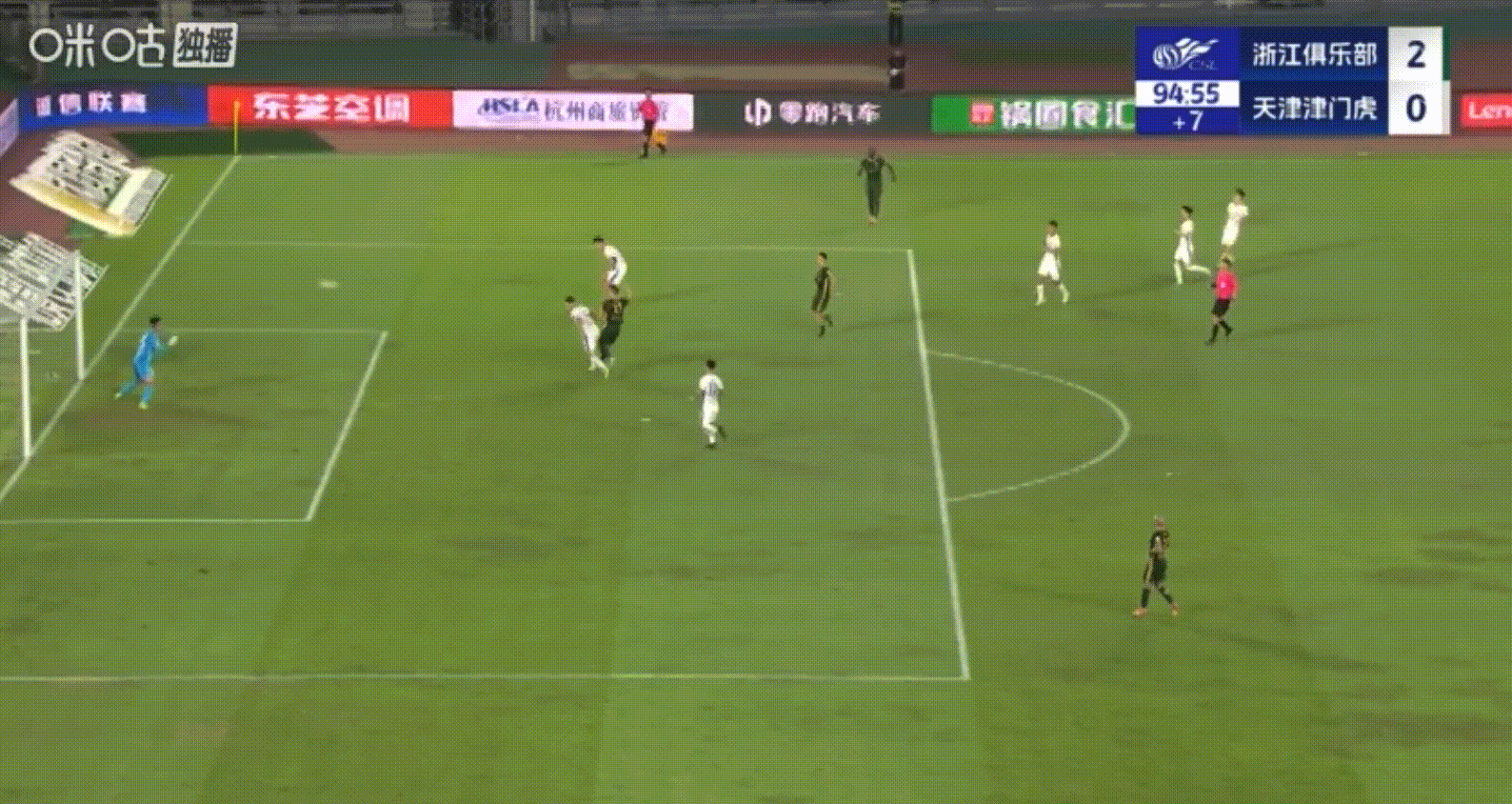 比赛第90+5分钟,弗兰克接奥乌苏边路传中,禁区内不停球凌空抽射破门,帮助浙江队2-0锁定胜局。