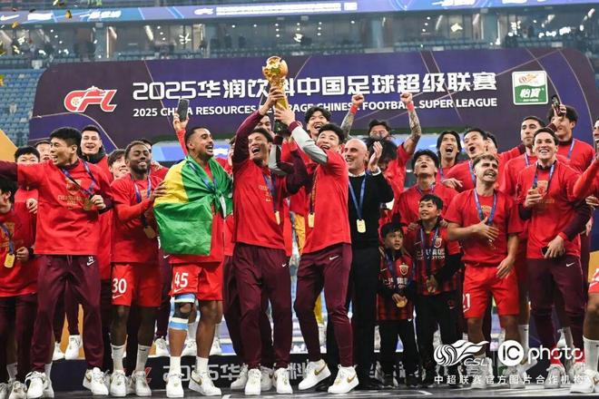 至于降级区方面,长春亚泰在第30轮开打前已经确定降级,而梅州客家在保级生死战惨败给北京国安,最终与长春亚泰一同降入中甲,李霄鹏执教的青岛海牛则惊险保级成功。 2025年不仅对中超意义重大, 对中国三级足球职业联赛更是如此——这是中国足球职业联赛联合会“接手”的首个正式赛季。(延伸阅读:) 如果说中足联的成立标志着中国足球“管办分离”的开始,那么本赛季中超联赛的火爆局面,则是证明了中国足球“管办分离”迈向了正确的轨道。 回顾本赛季,无论是场上的竞技表现和裁判表现等,还是场外的商业体系以及球迷文化来看,中超已经逐渐展现出职业联赛的成熟与活力。 上海海港开创中超王朝 上海海港本赛季的坎坷卫冕历程,堪称队伍最困难的一个赛季。 回顾上海海港2024赛季的卫冕之路,球队从第11轮开始反超上海申花一路保持领先优势,然而本赛季的卫冕之路却显得跌宕起伏。 首先从人员配置方面就可以看出,本赛季的上海海港整体实力相比此前已经“降级”。球队两个核心外援奥斯卡以及巴尔加斯先后离队,加之上赛季的“金靴”武磊因为膝伤问题赛季报销,仅为球队出场6次,贡献1球1助攻。