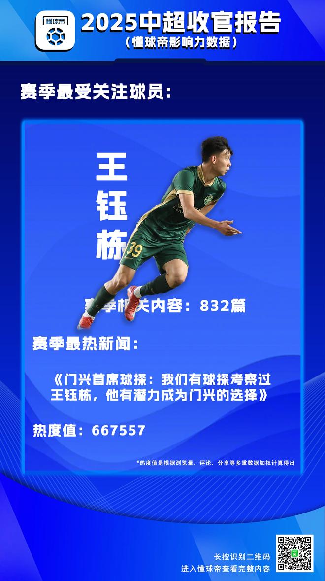 如果让各位从本赛季中超的所有球员中选出一个你认为最受关注的球员,王钰栋一定会是一个最普遍的答案。 事实也确实如此,在过去的一个赛季中,王钰栋成为了最受关注的中超球员。本赛季,王钰栋实现爆发,打出了状态极佳的一个赛季。 其现象级的表现加上各级国字号的加持,让王钰栋成为了如今最受关注的中超球员。 而关于王钰栋的最受关注的新闻,是一则门兴球探对于王钰栋的表达。这也体现出了人们对于王钰栋外出留洋的期待与渴望。