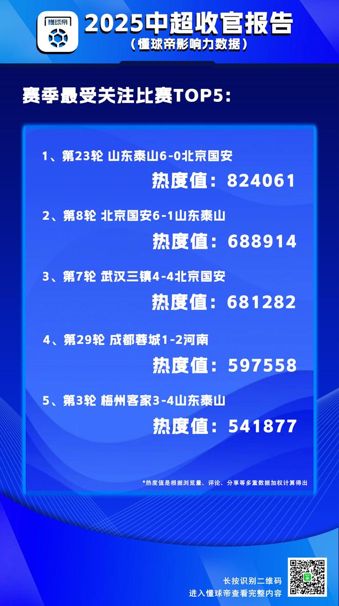 2025赛季中超联赛已经落下帷幕,一年一度的《懂球帝中超收官报告》正式跟大家见面啦。今年,我们将从懂球帝影响力数据、赛事基础数据以及中超MVP相关数据三个方面,来为您呈现这一整个赛季中超的盛况。