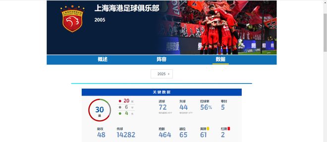 上海海港本赛季共打进72球,送出42次助攻。