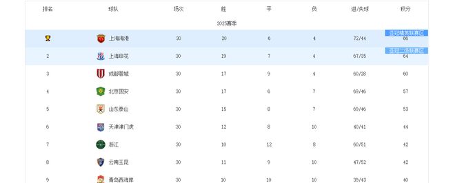 中超25赛季结束,排名前五的队伍按照由高到低顺序是上海海港、上海申花、成都蓉城、北京国安、山东泰山。