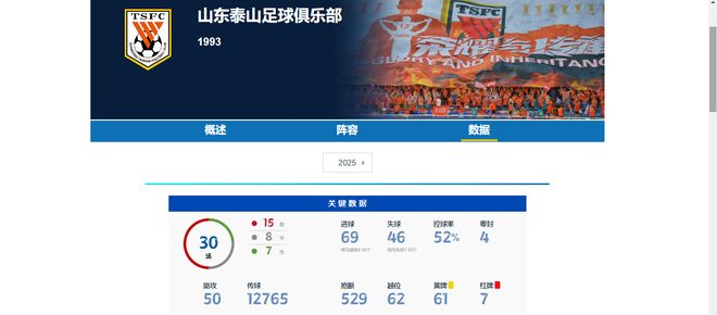 山东泰山本赛季共打进69球,送出50次助攻。