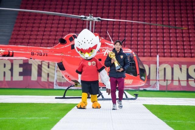 2025赛季,上海海港以20胜6平4负、积66分的优异战绩成功卫冕中超冠军,继2023、2024赛季后实现“三连冠”伟业,将第四颗冠军星荣耀绣上队徽。赛季征程中,蒋光太、李帅达成代表俱乐部出战百场的里程碑成就,门将颜骏凌更是以五百场出战记录,生动诠释了“一人、一城、一队”的坚守与担当。老中青三代球员携手并进,用汗水与拼搏铸就了这个属于海港大家庭的冠军之年。 仪式感拉满!低空送杯+奖杯矩阵定格荣耀 总结会在悠扬的交响乐曲中拉开帷幕,俱乐部吉祥物伊戈率先登场暖场,海港一线队全体教练员、球员与工作人员在全场热烈欢呼声中集体亮相。激动人心的夺冠视频播放完毕后,载有队长王燊超与火神杯的临港捷运纪念版直升机从川沙飞抵球场,这一“低空+足球”的创新环节,不仅展现了冠军荣耀,更成为俱乐部探索体旅融合新范式的生动实践。随后,王燊超与上海海港足球俱乐部党总支书记、总经理沙良昌共同将新赛季冠军奖杯安放于奖杯柱顶,与三座往届火神杯组成“冠军奖杯矩阵”,全场掌声与欢呼声经久不息。 致敬功勋与恩师,温情瞬间暖动全场