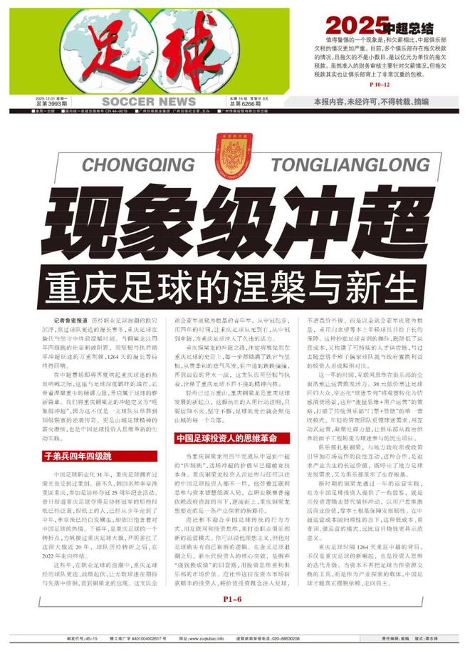 本期特刊 《现象级冲超,重庆足球的涅槃与新生》 点击下方小程序即可购买 数量有限 欲购从速