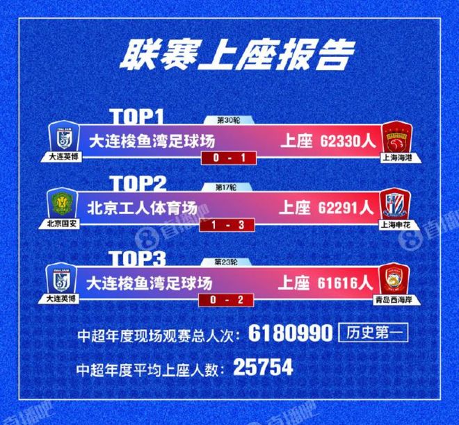本赛季中超联赛的总现场观众高达6180990人次,首次突破600万大关,刷新了历史纪录。大连英博主场与上海海港的收官战上座人数达到了62330,创下了赛季之最。整个赛季,一共12场比赛上座人数跨过了6万人大关。 中超联赛依旧有着十足的吸引力,这是其球市火爆的根本原因。经过了职业联赛三十年的培育,各支中超球队都拥有了数量众多的拥趸,而且周末看球已经潜移默化成为了很多球迷的生活方式之一。 在中足联正式挂牌之后,中超联赛精彩程度也在逐步提升。本赛季上海海港、上海申花、成都蓉城和北京国安四强争霸的戏码敛足眼球,保级大战也扣人心弦。王钰栋、刘诚宇、蒯纪闻等青年才俊逐渐崭露头角,也提升了联赛的吸引力。 中足联通过与各赛区安保部门沟通协调,竭尽所能帮助赛区实现上座人数的扩容。再加上《关于支持国际消费中心城市培育建设的若干措施》等政策指出,在确保安全的前提下,提高营业性演出、体育比赛等大型群众性活动的可售(发)票比例。这些都成为了中超联赛球市火爆的先决条件。 上述种种,让中超联赛球市的火爆摆脱了“偶发性”,逐渐走向常态化。中足联也适时启动了“职业联赛文明行动月”系列活动,引导球迷文明、有序观赛。中超联赛火爆、健康的球市,进一步提升了中超联赛的品牌形象和商业价值。