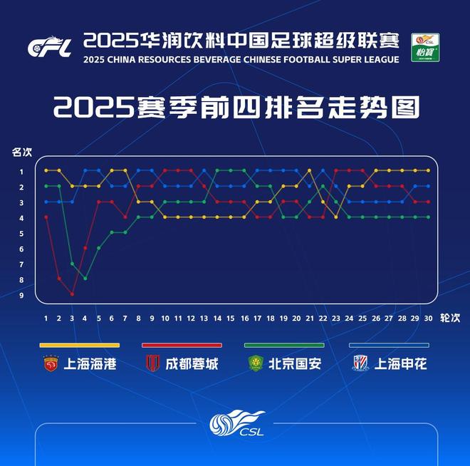 中超官方发2025赛季前四排名走势图:榜首共12次易主
