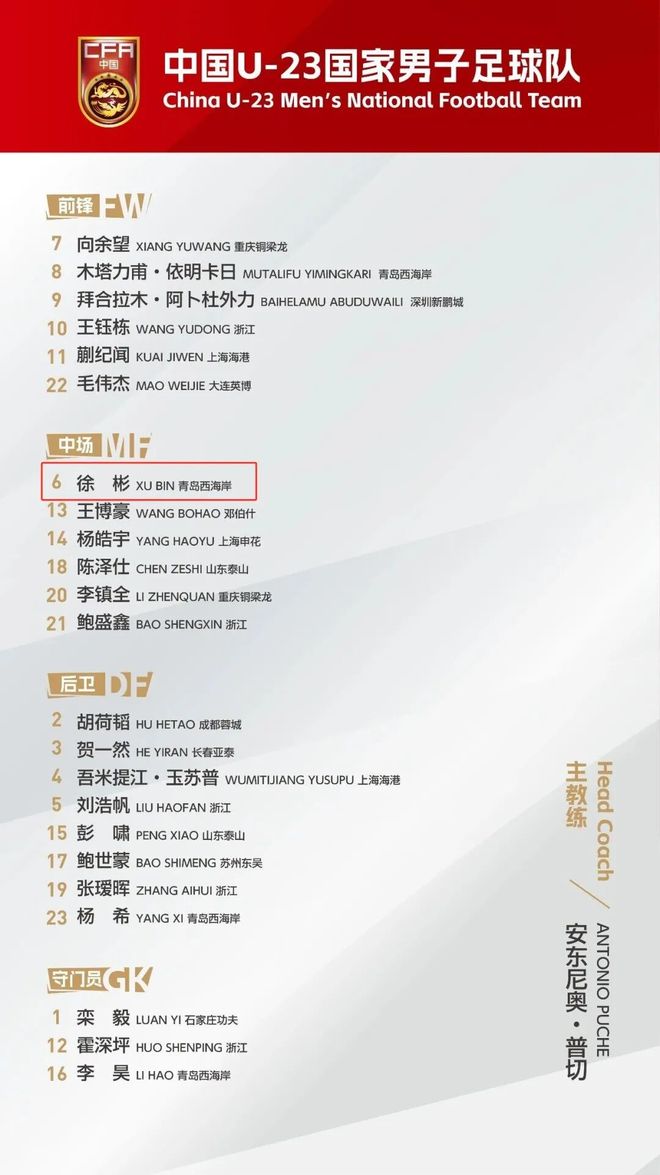 北京时间1月8日22时,中国U23男足将迎来本届U23亚洲杯的首秀,对手是伊拉克U23男足。 CCTV5和央视网体育将于21:55起直播本场比赛,敬请关注! 本届U23亚洲杯共分四个小组,中国队与伊拉克、澳大利亚和泰国队同分入D组,小组前两名将获得晋级淘汰赛的资格。 1月4日,2026年U23亚洲杯中国队23人参赛名单正式公布,现效力于中超青岛西海岸的湖南籍球员徐彬入围,徐彬来自益阳市南县,出生于2004年5月2日,在球场上司职后卫,出道于恒大足校,后入选广州队一线队征战中甲联赛。2025年,徐彬转会青岛西海岸参加中超联赛,出场27次首发21次,贡献3次助攻,同年2月28日,入选中国男足国家队2025年第二期集训名单。 2025年,徐彬(左)代表青岛西海岸参加中超联赛。图源/新华网 徐彬(前排左一)备战U23亚洲杯。图源:王钰栋R微博 加油中国队,加油徐彬! ☞ 推荐阅读 来 源 :央视网体育、红网、益阳 广电 编辑 :陈晓林 一审:袁少波 二审:李征 三审:林慧 |